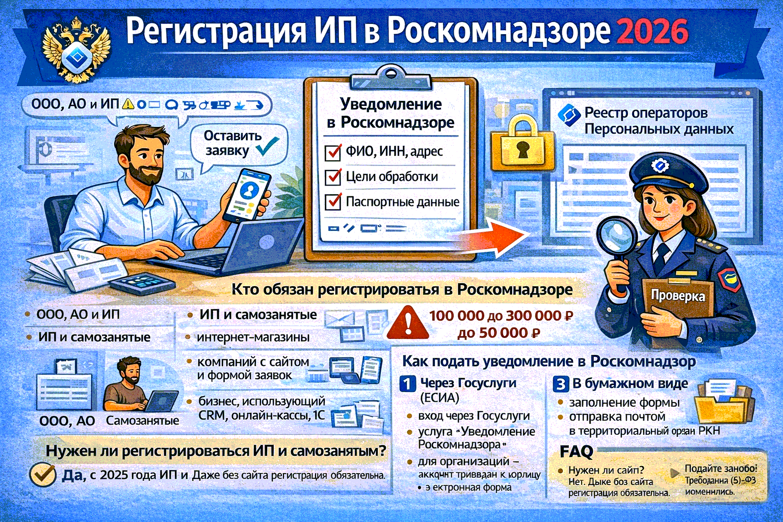 Нужно ли уведомлять Роскомнадзор ИП и самозанятым